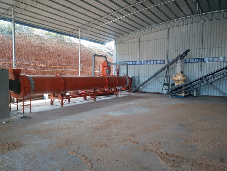 隨著圓筒的轉(zhuǎn)動物料受重力作用運行到較底的一端。濕物料在筒體內(nèi)向前移動過程中,直接或間接得到了載熱體的給熱,使?jié)裎锪系靡愿稍?,然后在出料端?jīng)皮帶機或螺旋輸送機送出。